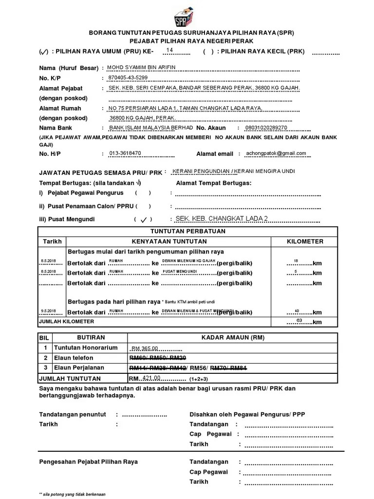 Borang tuntutan di perenggan 15 sedang dikemas kini. Pihak kementerian/jabatan hendaklah mengguna pakai format. (kadar elaun makan, pendahuluan diri sewa. 4.1.6 elaun perjalanan kenderaan atau tambang pengangkutan awam. (2) kadar penyediaan makan dan minum mesyuarat serta kursus.